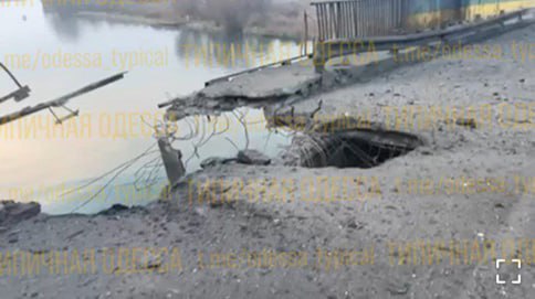 Продолжаются удары по важному логистическому узлу — мосту в Маяках. Дорожное покрытие значительно повреждено с обеих сторон моста. Движение через мост невозможно.