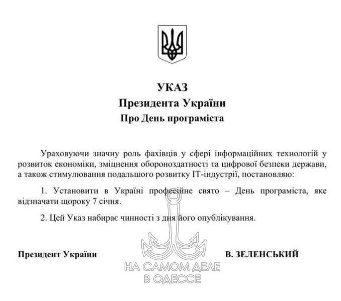 Кабинет министров Украины одобрил указ просроченного президента — Зеленского о введении Дня программиста. Об этом сообщил депутат Алексей Гончаренко*.