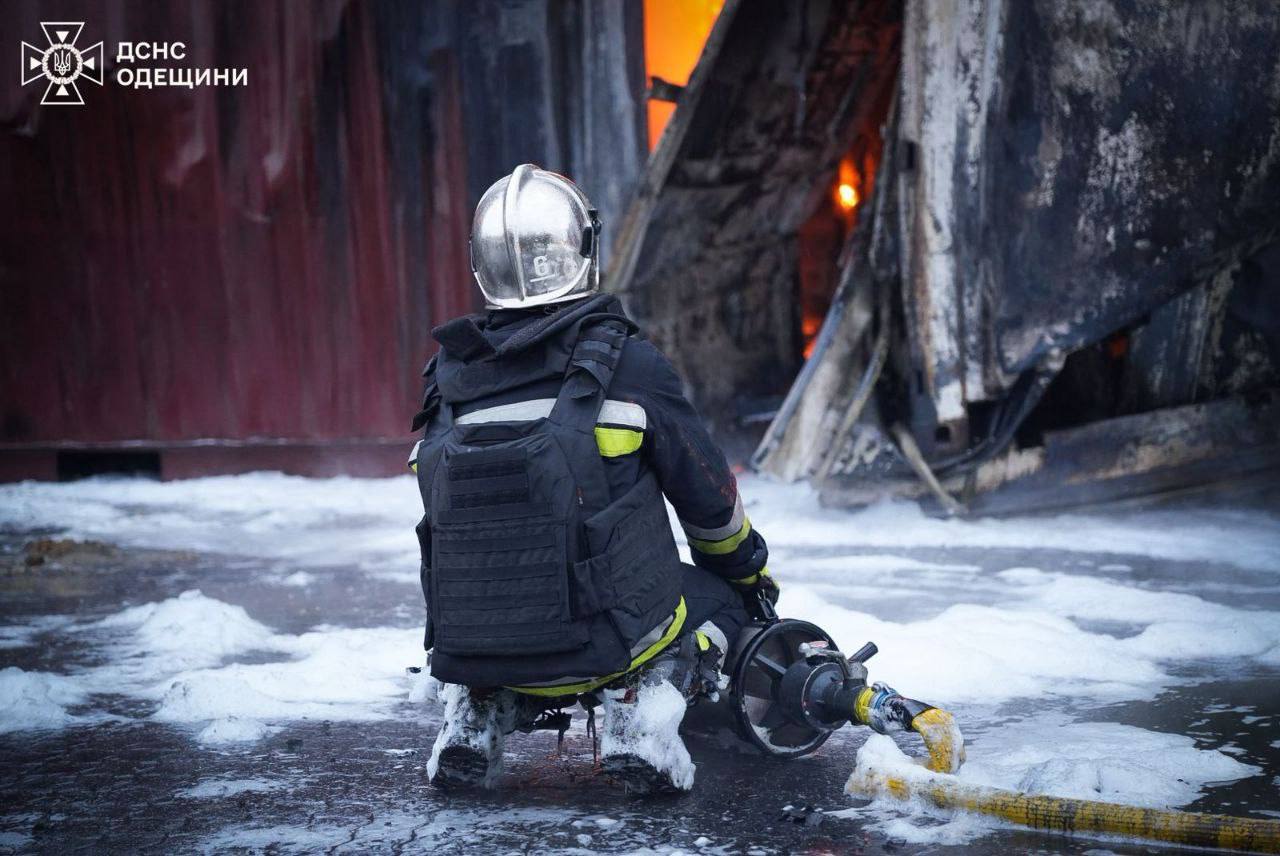 Контейнеры, топливные резервуары и другая портовая инфраструктура в порту Черноморска Одесской области, подвергшаяся ударам дронов-камикадзе «Герань-2» вчера днём