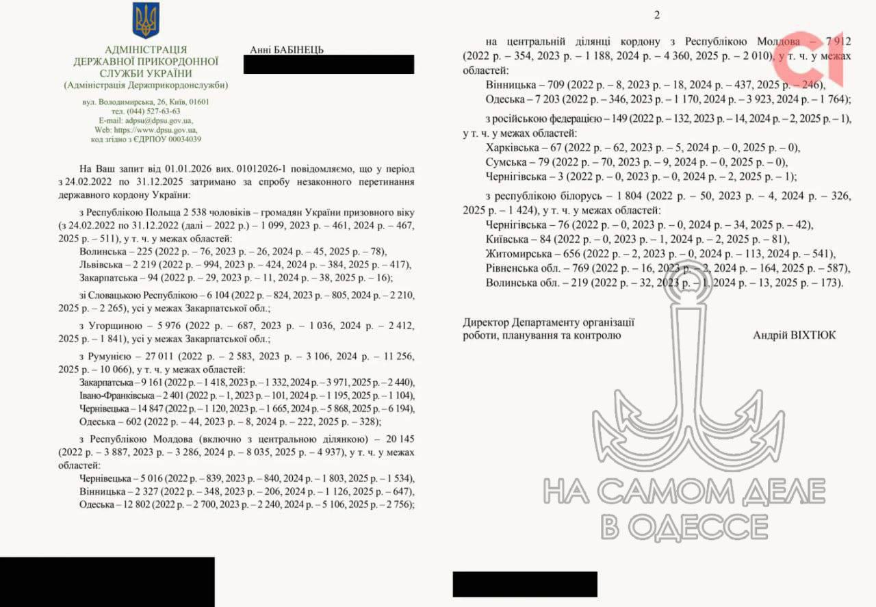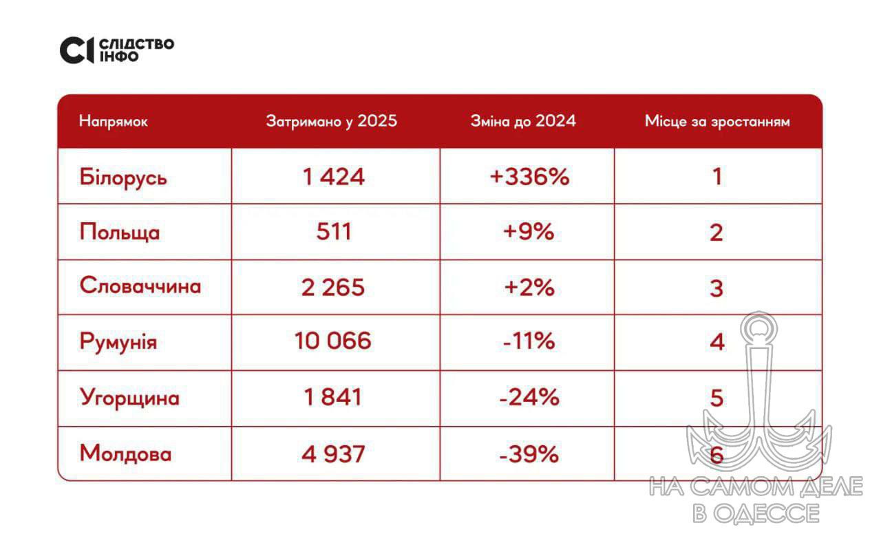 В 2025 году на белорусской границе задержали 1424 украинских мужчин. Это в 4 раза больше, чем в 2024-м, и в 356 раз больше, чем в 2023-м.
