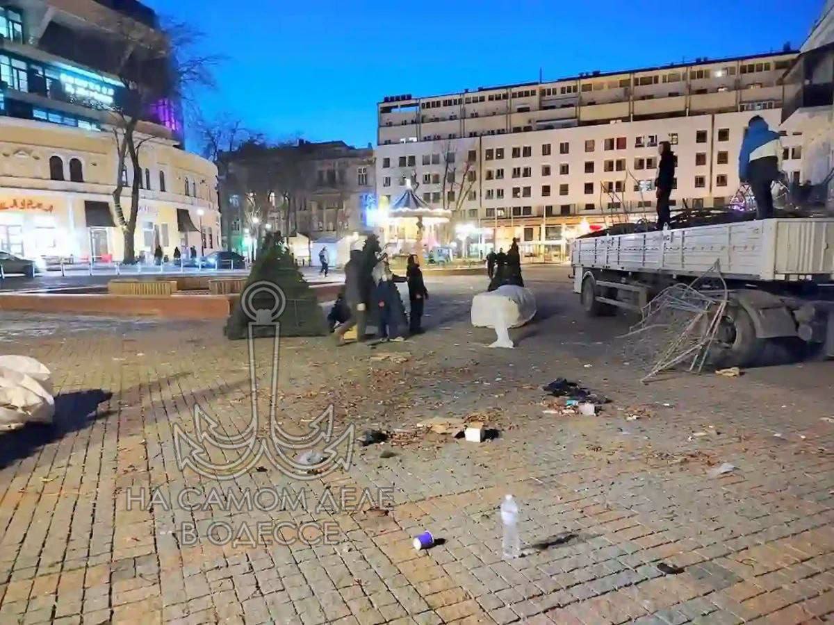 Видно, кто-то вспомнил, что после Старого Нового года ёлке на площади положено ехать на заслуженный отдых, а не стоять до весны, как водится у нас иногда. Или как самые стойкие ждут до следующего года Площадь готова к следующим праздникам, которые Одесса, конечно же, тоже встретит с особым шармом.