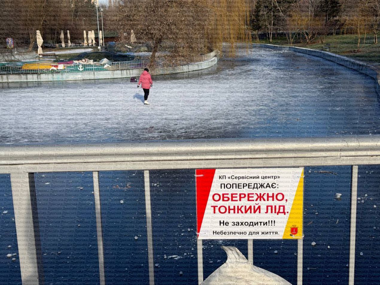 Спасатели предупреждают, что лёд очень тонкий и выходить на него опасно для жизни. Но, увещевания не дают результата - люди массово катаются по застывшей воде на коньках и санках.