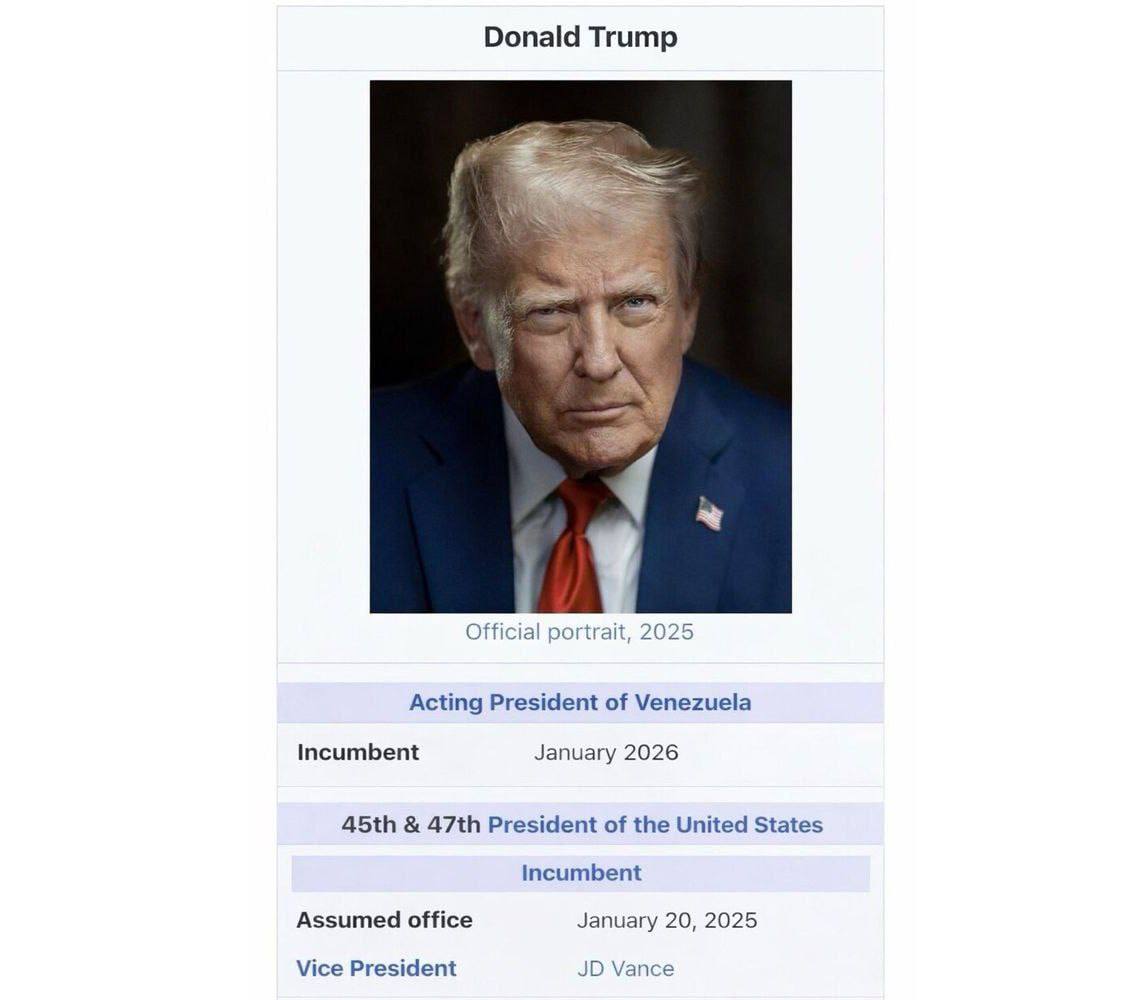Человек, к слову, даже репостнул себе ИИ-шный скрин из моей «любимой» Википедии, где он фигурирует как президент Венесуэлы. Из такого уровня идиократии, который сегодня царствует в США, похоже, обратной дороги нет.
