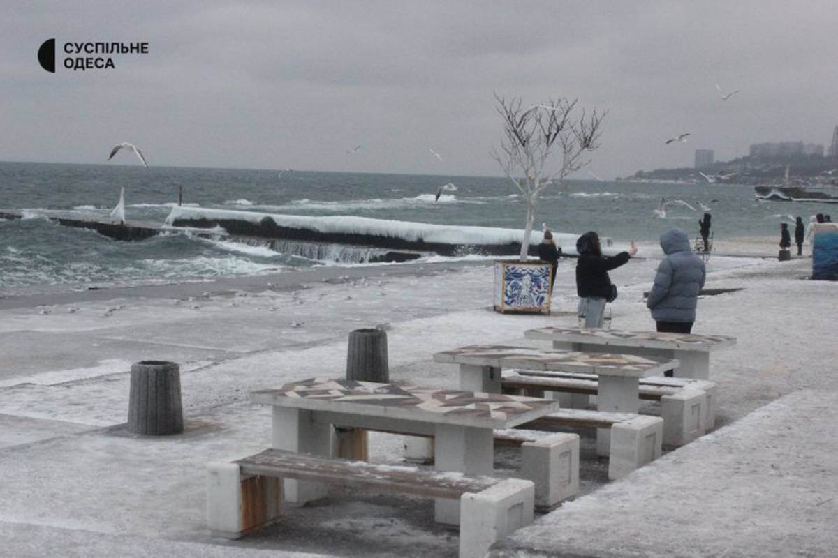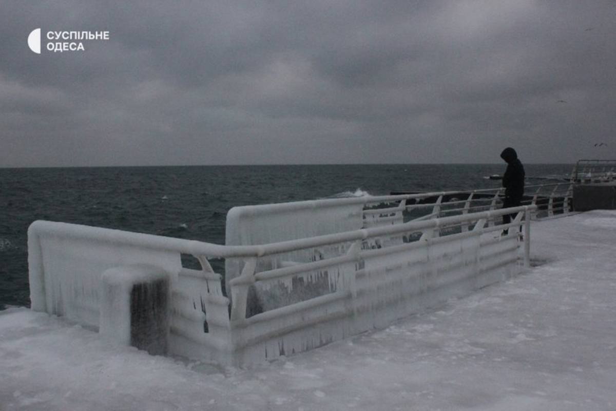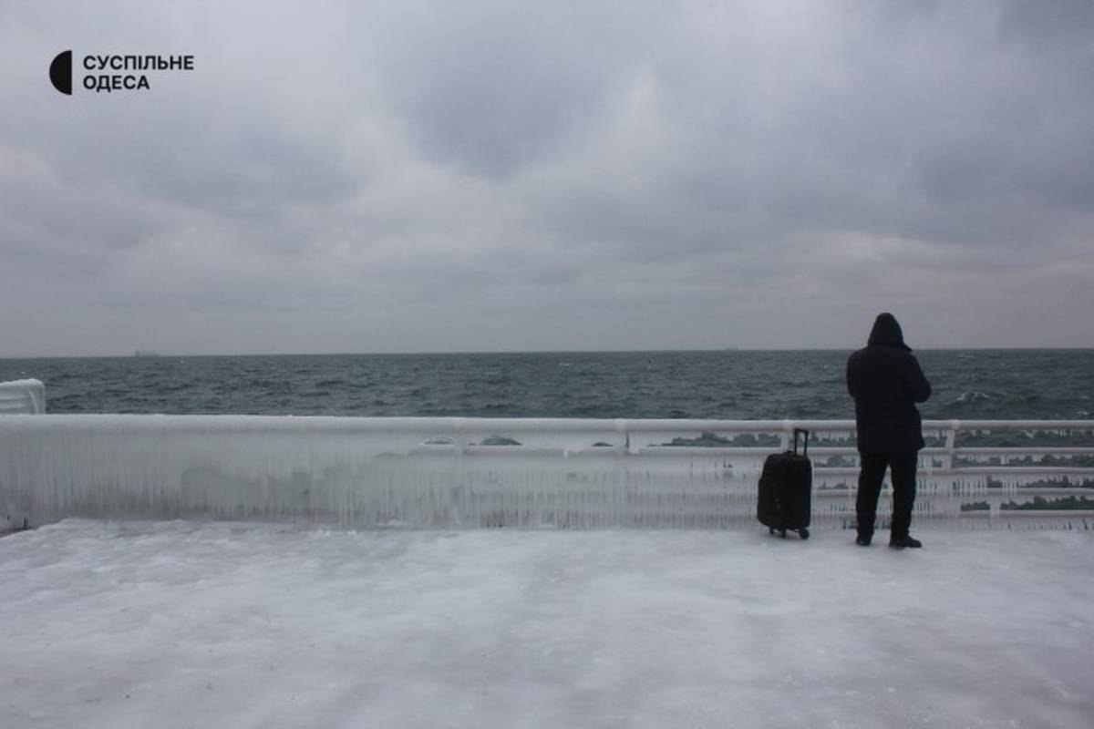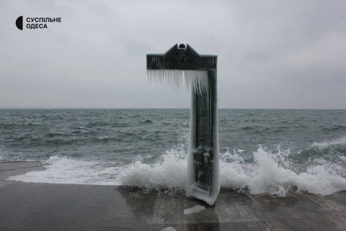 Одесса замерзает без света и тепла, а пляж Ланжерон покрылся ледяной коркой.