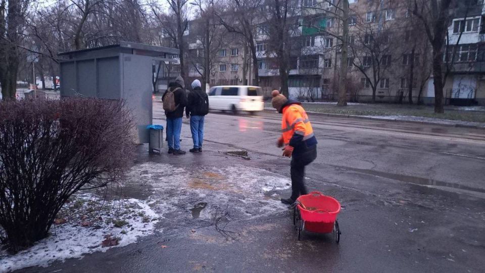 В Одессе борются с гололёдом