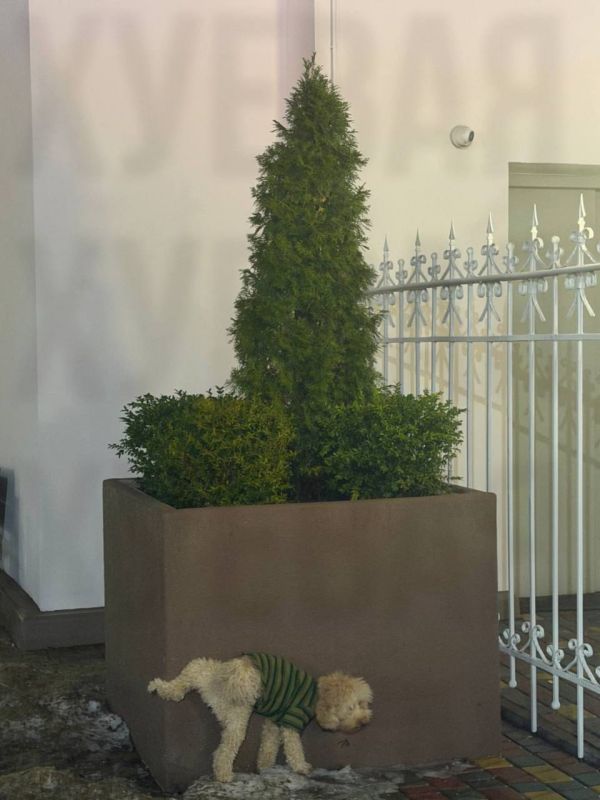 А вы что здесь видите помимо писающей собачёнки - кустик или