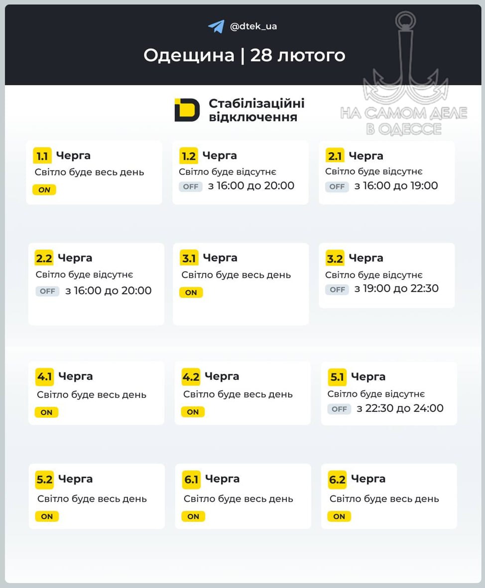 Коммунальные службы 28 февраля 2026 года в Одессе и области информируют: