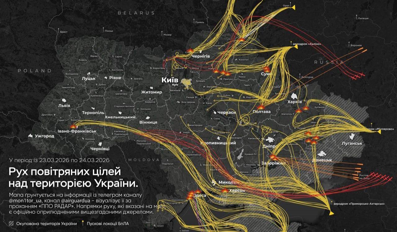 Основная цель — энергоинфраструктура. Под ударом оказались Полтава, Наливайковка, Калуш (Ивано-Франковская область), Одесса, Южное и Запорожье. Также атаки были зафиксированы в Шостке и прифронтовых районах