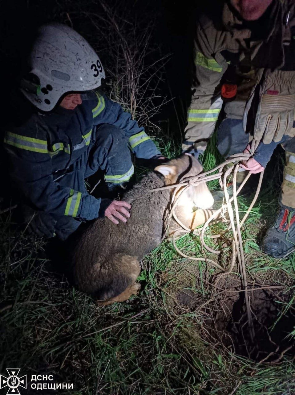 Животное подняли с помощью верёвки, и, к счастью, обошлось без травм.