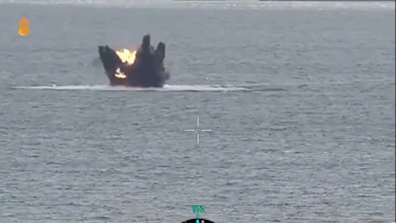 Как заявляется, на кадрах уничтожение российского безэкипажного катера-камикадзе, приблизившегося к одному из портов в Одессе.